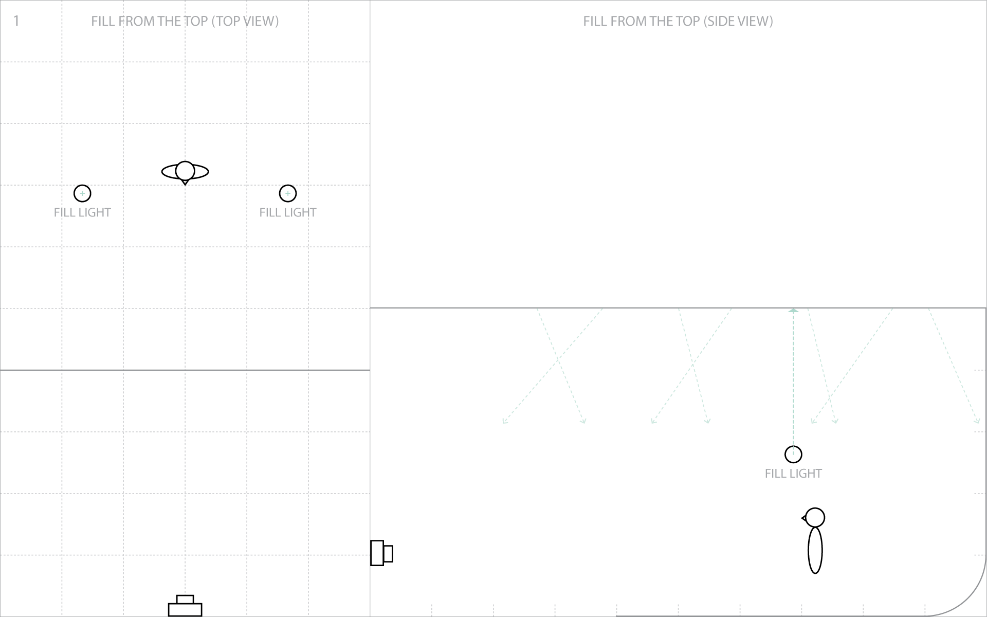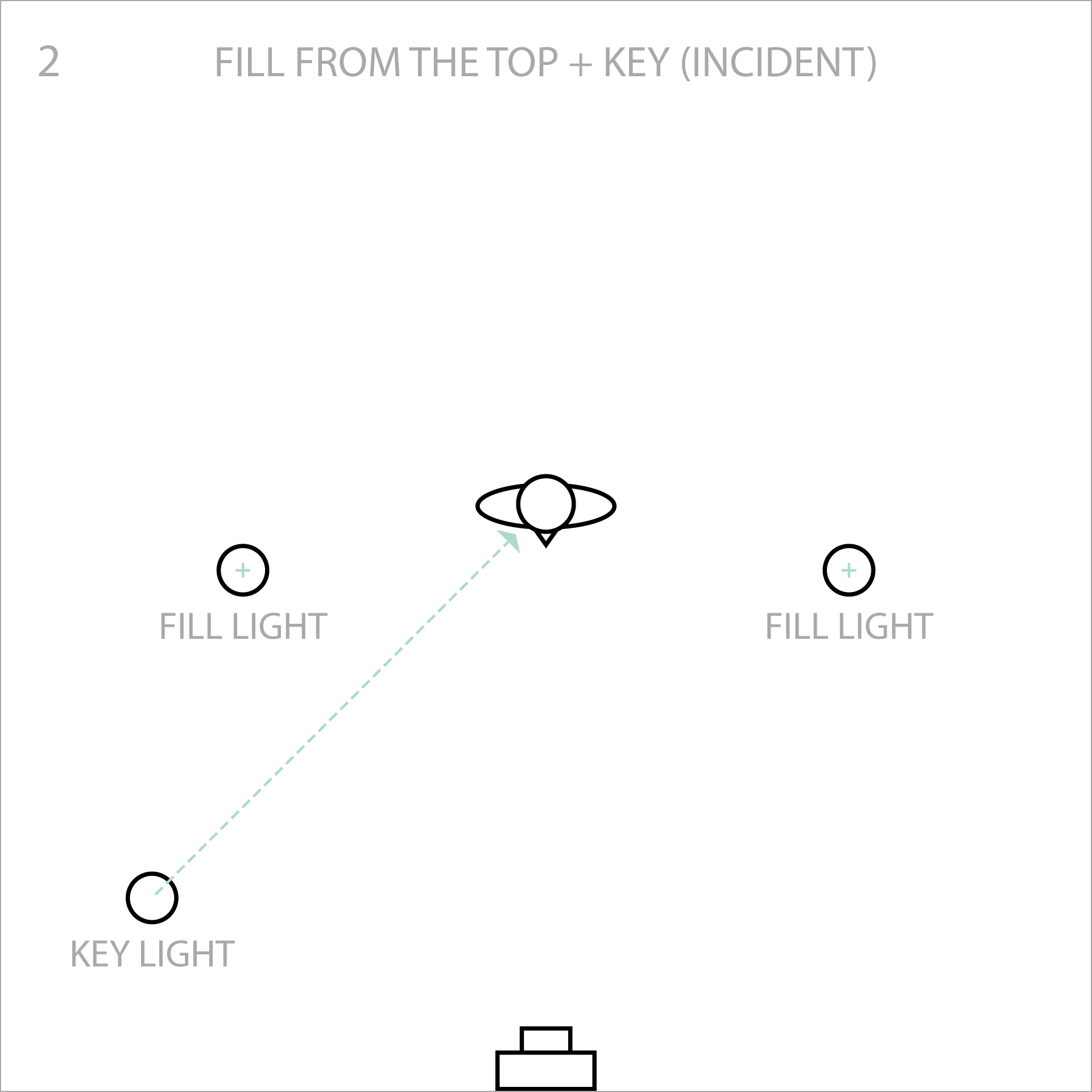 На рисунке 2 показана базовая схема заполнения от потолка с добавлением жёсткого рисующего света.